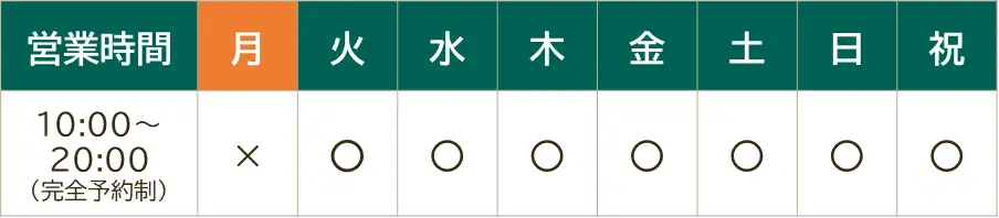 当日は予約時間の5分前にお越し頂けますようお願いいたします。